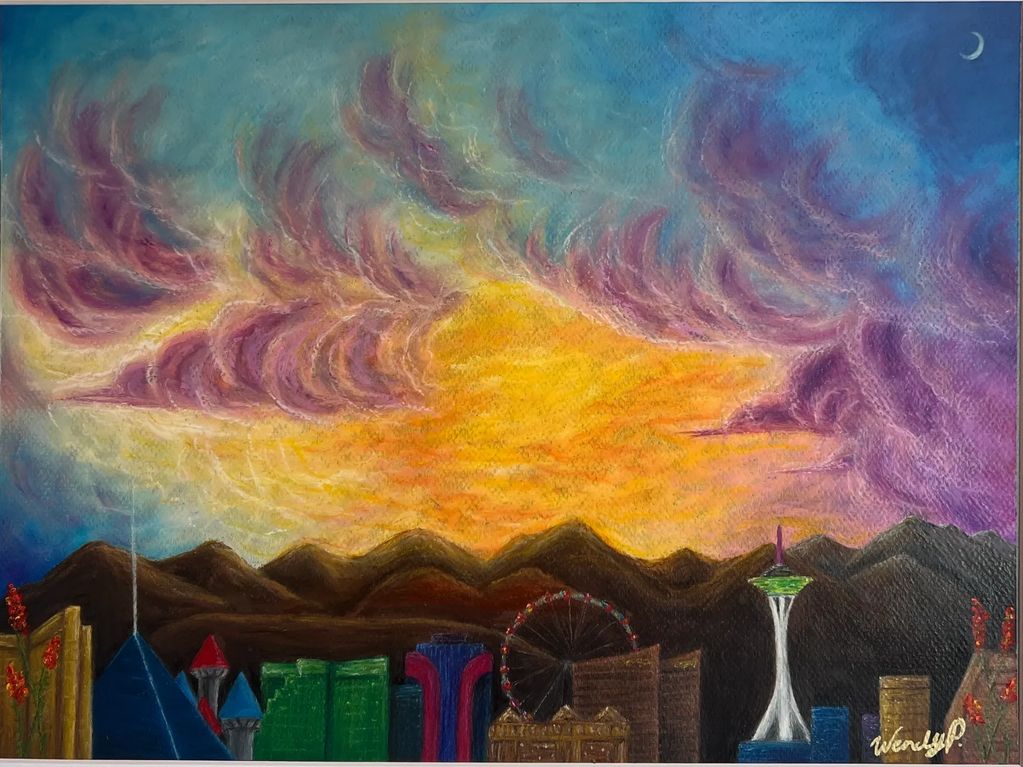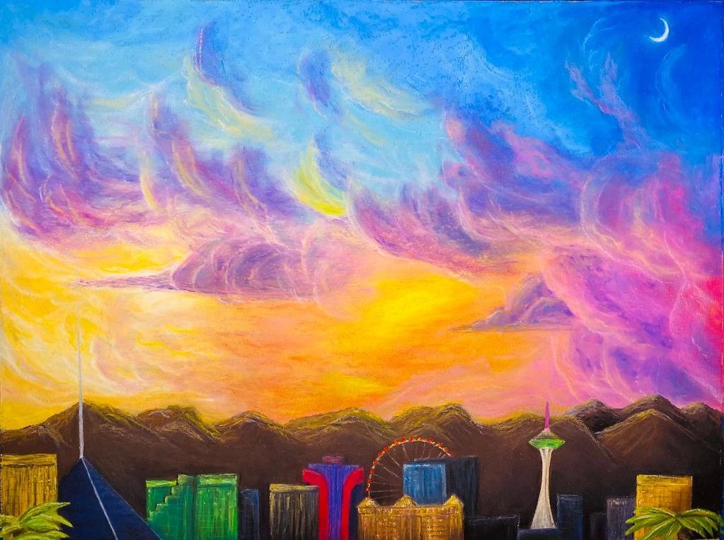 “Las Vegas Sunset” Caran d'Ache NeoPastels Oil Pastels on 11”x14” 170lb Mi-Teintes artist series pastel paper.